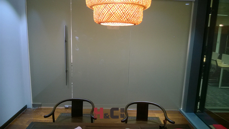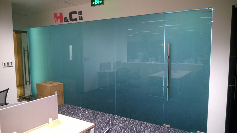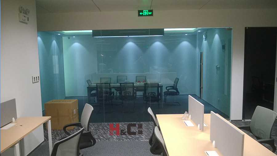 地點:廣州市天河區(qū) 應(yīng)用:5+5mm灰玻智能調(diào)光玻璃辦公室隔斷